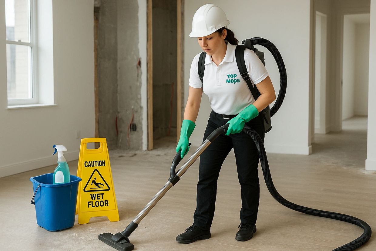 Top Mops Cleaning Services provides professional post-construction and final cleaning for commercial buildings, renovations, tenant upfits, and new construction projects throughout Wilmington, NC. Our trained and fully insured teams handle rough cleans, final cleans, sticker removal, detailed dusting, glass polishing, floor care, and complete jobsite turnover.